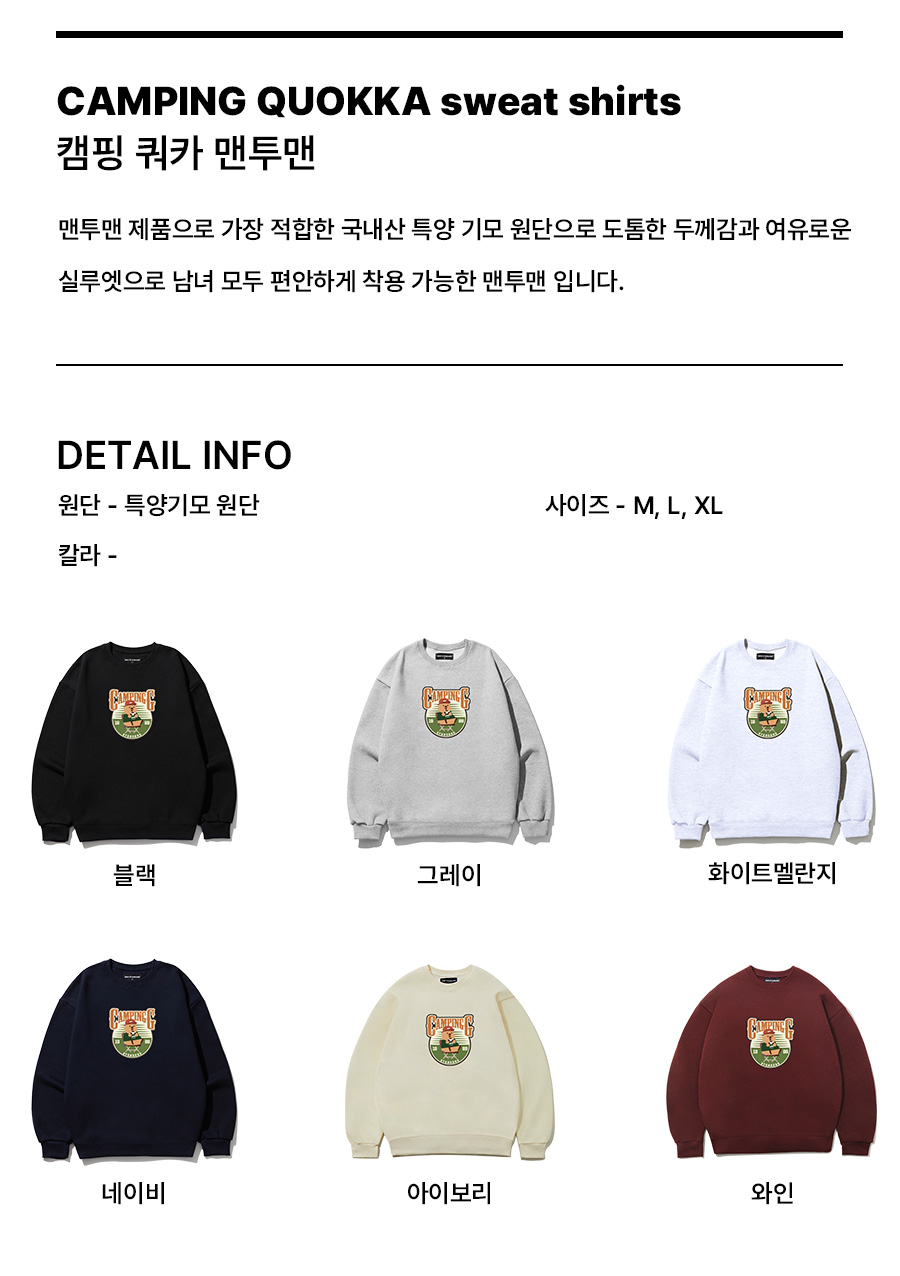 [쿼카X1989] CAMPING QUOKKA 맨투맨 (STMSTD-0166)
