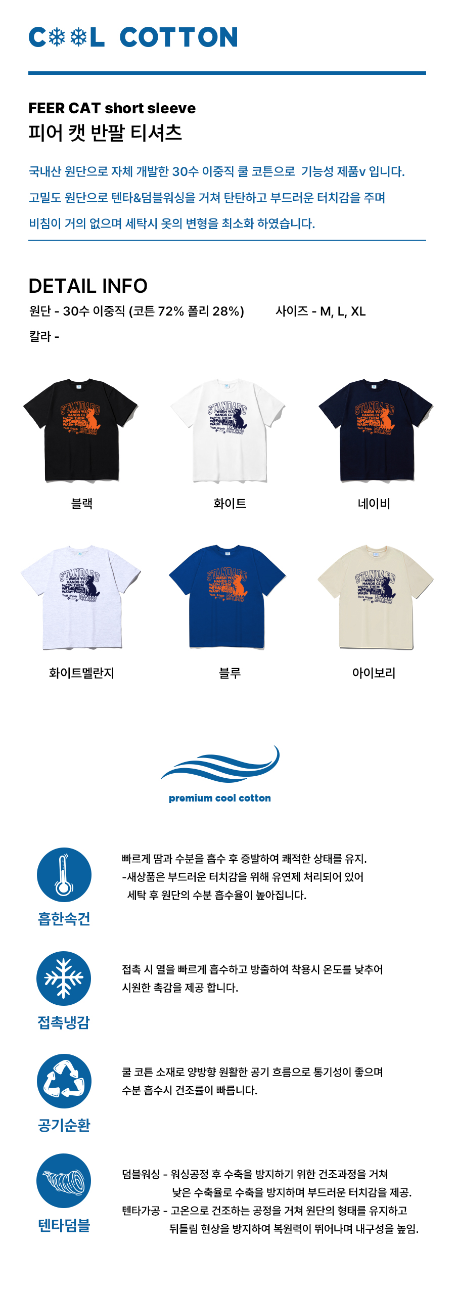 FEAR CAT 쿨 코튼 오버핏 반팔(SISSTD-0109)