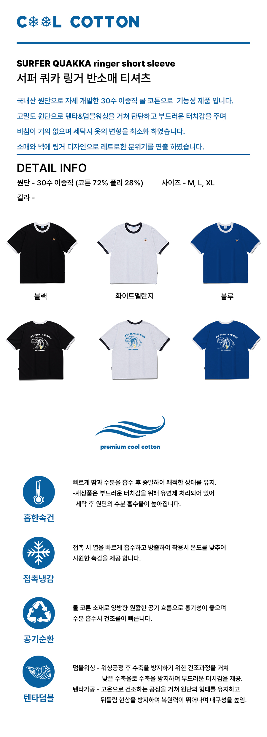 [쿼카X1989] SURFER QUOKKA 쿨 코튼 링거 반소매(SRSSTD-0162)